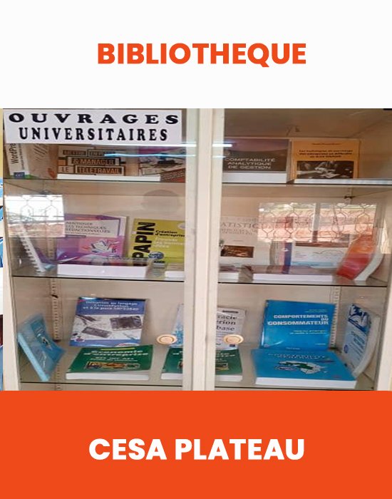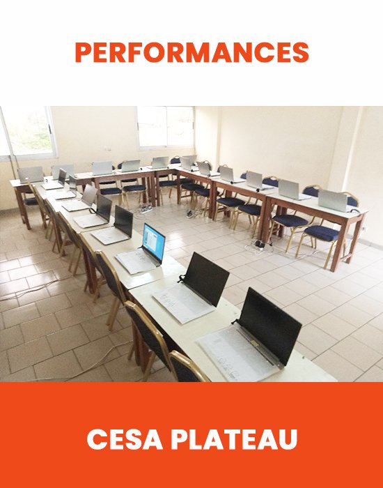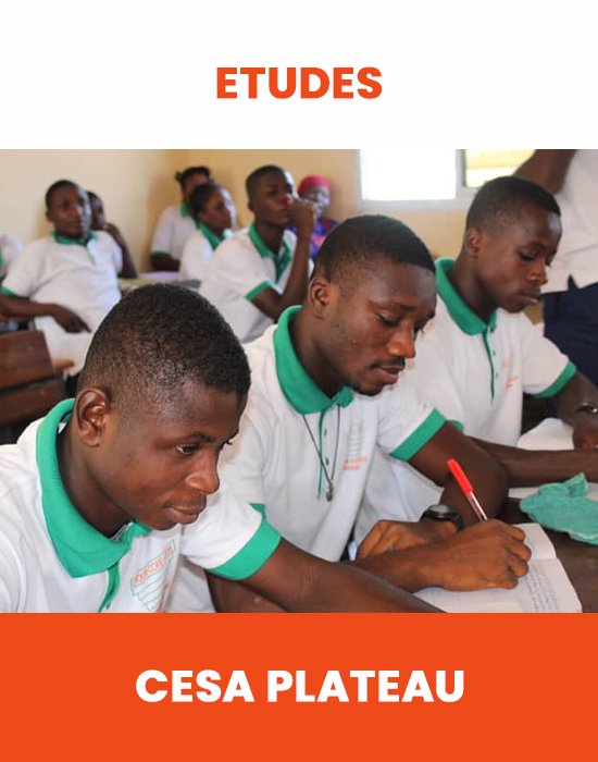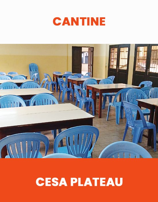 Située au Plateau-SITARAIL sur la route de Carena, face à la nouvelle SICTA, l'école CESA Plateau se distingue par son cadre moderne et son offre éducative variée, tant au niveau secondaire que supérieur. Nous nous engageons à fournir un environnement d’apprentissage stimulant, avec des infrastructures de pointe, pour accompagner nos étudiants vers l'excellence académique et professionnelle.
